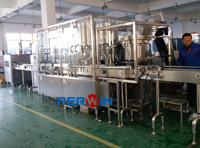 Questi imbottigliamento ad alta velocità dello spruzzo e linea di produzione di coperchiamento sono stati progettati dalla nostra propria società con il unscrambler automatico della bottiglia, la macchina di rifornimento continuamente rotatoria di riempimento di seguito di 8 teste, la macchina d'aggiunta rotatoria del cappuccio di 8 teste e una tappatrice rotatoria di 8 teste (tipo di spinta & bottiglia a vite). Il riempimento e ricoprire sono progettati in una macchina del monoblock. Questa linea di produzione velocità di marcia stabile è intorno 80 bottiglie/min.